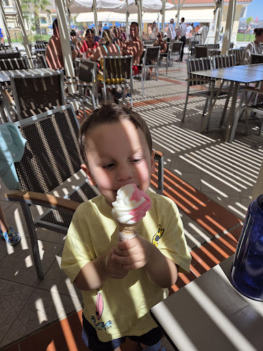 Food and drinks: The restaurant offers high-quality food with a good amount of variety. Each day the main restaurant has its own theme for dinner, including Asian, Mexican and Greek. Food options each day include the typical options for picky eaters, like French fries and pastas, but also some great choices for those wanting to venture into more authentic cuisines. For example, the rabbit stifado during the Greek themed day was absolutely fantastic! As always, children are given special attention in the form of a little kids buffet with options like pasta, chicken nuggets and some neutral tasting veggies (which our son unfortunately always skipped). The restaurant was big enough to ensure that we would quickly be given a seat. However, at the buffet itself it could get rather crowdy at times. Fortunately, the guests all behaved politely, such that there never were any issues with people skipping lines, pushing or otherwise. On the beach side is a street food corner with fantastic freshly made snacks and treats, such as hand-made pizzas, pita gyros, as well as slushies and soft serve ice creams! The all-inclusive cocktails were not great, as they are all based on overly sweet syrups which is typical for resort within this segment. However, the mojitos were delicious and they also offer included liquors like an Irish cream which became our go-to evening drinks.