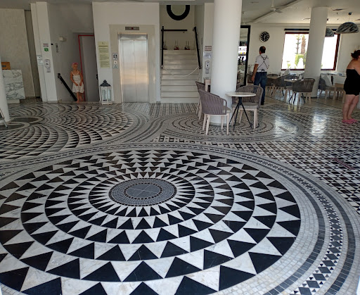 On arrival we were greeted by staff and Mike at reception was efficient and helpful. Located on the main road, the hotel has amazing panoramic views of Lindos bay and the acropolis. The public areas are beautifully decorated with intricate tiling and pebble mosaic designs throughout. There are two pool areas offering comfortable sun loungers and umbrellas: both are not too crowded. There's a kid's pool and a bar/restaurant with shaded, outdoor seating to keep the whole family happy. If you have young children there is also a soft play area downstairs. The rooms are comfortable with a fresh, modern design and plenty of storage space. Ground floor rooms have ramp access for guests with mobility difficulties. The patios and balconies are all decorated with pebble mosaics and offer at least a partial view of the sea or acropolis. Sadly, the toilet seats are flimsy, which lets down the overall standard of the interior design. The rooms were cleaned with towels and sheets replenished daily, except on Sunday, which is understandable. The breakfast buffet is generous, with a wide choice of cereals, fruits, cooked dishes, breads, juices and hot beverages. But, this is also where this hotel fails: service. The man overseeing the breakfast delivery is, quite frankly, an intrusive bully, to both his staff and to the guests. He uses his great bulk to make his presence known, blocking the way of guests while ordering his staff (everyone of whom is hard-working and polite). He reprimands guests like a school teacher! Be warned: departure day! If you have a late transfer pick-up and wish to retain your room until the maximum time of 6pm, the sum of between €50 to €120 depending on room type is required. Likewise, if you opt to use the 'openly accessible' showers downstairs instead a mandatory charge of €7 per couple is enforced. It gets worse! If you would like to leave your bags securely while you make the most of your last day, a charge of €2 per bag is made. It's like the hotel is saying, "You've checked out now so we'll try to make money from you in any way we can because you are inconvenienced through no fault of your own." On our checkout day these additional charges caused much discussion and rebellion amongst departing guests, some opting to leave their luggage...
