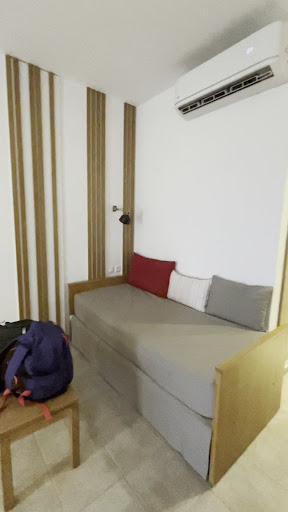 Read moreWe stayed here for a week in early October. The room was an updated double. We requested a non ground floor room as I like to enjoy time on the balcony in relative peace and privacy. Unfortunately we were allocated to a ground floor room - 27. The room is nicely furnished and was very clean but to access it means going down a narrow passage which is poorly lit at night. The patio door had a large crack in the bottom glass panels and the patio area was really dark due to being partially sunken and in an enclosed area. The corner got sun for 5 minutes a day and it took 3 days for my bikini to dry. The room looked out onto the raised garden area,the front doors of the opposite rooms plus the car park.It was gloomy and cool. I would not recommend this room to anybody staying late season.|The hotel itself is lovely. It is kept very clean and the staff are friendly. The pools are nice and the view of Lindos and the Acropolis from the dining room are amazing.|We stayed half board. As vegetarians we enjoyed the breakfast - yoghurt, cereals, toast and a variety of hot items. Avoid the fruit juice if you dislike sugary concoctions. My husband really enjoyed the cheese pies and spinach pies. The only criticism would be that I had slices or orange on 2 days which I could not eat as they tasted of onion - either from the use of the same knife or the hands of one of the kitchen staff.|Evening meals were not nearly as nice for vegetarians. There was always a variety of salad items but hot food was very restricted. Pasta every night. One night there was stir fried vegetables and sweet and sour sauce however that was the night that the rice contained meat so it had to be eaten with chips or pasta. That seemed to lack forethought. Another night there was ratatouille. But all in all the dinner fare was very repetitive and boring for those who do not eat meat or fish. On our last night we just needed a change and ate a wonderful vegan moussaka in T-veg just off the square in Lindos.|To sum up the hotel is lovely and the views amazing. I doubt I would return though after our evening meal and allocated room experience. I note on previous reviews vegetarian options were criticised and the hotel commented that they would try and address this. Sadly that is not...