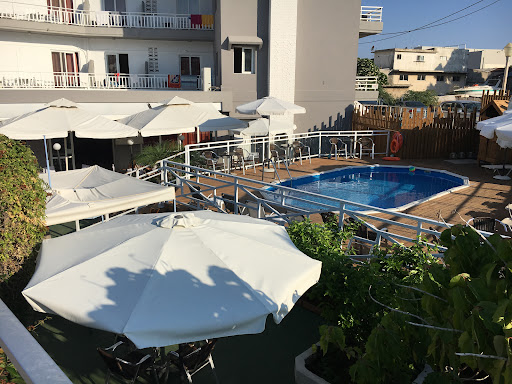 Read moreБыли в этом отеле в начале сентября 2017. Я бы рекомендовала этот отель для невзыскательных туристов, которые будут брать в аренду автомобиль и главной причиной является расположение отеля! До крепостной стены(по улице Канада) быстрым шагом 20-25 минут, до порта Мандраки при условии, что вы не заблудитесь в по улочкам за стеной 45-50 минут. Если вы будете брать экскурсии у туроператоров, то конечно они заберут Вас прям от отеля, но приличные пляжи и бухты будут очень далеко. Из центра Родоса(порт Мандраки) почти каждые полчаса ходят автобусы на Фалираки, Линдос, на них же можно доехать до бухты Калифея(прям рекомендую!) и остальных. Мы нашли автобусные остановки ближе к отелю, но все-равно это 15-20 минут в пути, а по солнцу идти жарковато. Напротив отеля есть стоянка и несколько фирм предлагающих авто в аренду. || Пляж рядом с отелем не понравился-море чистое, но песок грязный, вход в море с большими камнями, есть лежаки и киоск с напитками, а еще шланги с водой. Съездите в бухту Калифея, Линдос, на Сими и почувствуйте разницу!! Кстати, на остров Сими рекомендую поехать самостоятельно и с ночевкой. Постарайтесь найти быстроходные катамараны фирмы Dodekanisos, мы плавали на пароме и это по моим ощущениям очень долго, особенно обратно. ||Вернемся к отелю))) Номера небольшие, есть холодильник, телевизор, фен, фумигатор, кондиционер платный 5 евро/сутки. Наш номер был на 4 этажи и балкон выходил на бассейн, было очень шумно засыпать- шум в основном от мимо проезжающих мопедов и грузовых машин. Мы решили этот вопрос оплатив кондиционер и попросив одеяла. Душевая очень маленькая, но вроде хватало места. В санузле было окно и через него два раза залетали большие осы, как мы поняли у них гнездо в стене. Первые несколько дней они нас не беспокоили, но потом начали залетать в душ и можно сказать выселили нас с балкона))). Днем на балконе не посидишь, до 14 часов будет печь солнце.||Отдельно хочу написать об уборке. Заехали мы вроде в чистый номер, честно говоря не особо приглядывались, но дальнейшая уборка была очень посредственной. Полы, стол на балконе за 10 дней никто не протирал, раковину помыли один раз, когда мы повесили табличку с просьбой убрать и скинули полотенца на пол в душевой. До этого времени вся уборка заключалась в застилании кровати и «протирки» полов, волосы просто сметали из одного угла в другой. Порадовало, что постельное белье и полотенца были новыми и чистыми!!!||Завтраки очень скромные-чай, сильно разбавленный кофе, вареный яйца, иногда омлет, сыр, колбаса и сосиски очень плохого качества, хлопья, печенье. Очень не хватало овощей.||Когда мы покупали тур, то по цене было понятно в какой отель мы едем и кроме как к уборке у меня претензий нет. Хозяева и весь персонал улыбчивый, всегда готовый помочь, подсказать! ||Несколько советов или подсказок, которые возможно пригодятся вам в путешествии.||- ранее я писала, что до центра пешком далеко, так вот на ресепшен вам могут вызвать такси. Стоимость до центра 8 евро, обратно 5 евро. Стоянка такси напротив порта Мандраки. До полюбившейся мне бухты Калифея такси будет стоить 13 евро.||-если выйти из отеля и пойти на право, через 300 метров по правую руку будет кафе быстрого питания «Pita Fan» и вверх начнется та самая улица Канада по которой можно дойти до центра. Сразу за кафе будет первый приличный супермаркет, если не ленитьс