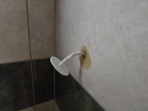 Upon first inspection, the room (a self-catering three bed 'studio') seemed quite nice. However, when looking closer, some of the fixtutes and fittings could use some repairs. For example, some of the cupboard doors were wonky and the draws were a bit stiff and tough to pull out. With the room being self-catering and containing a sink, two hob rings, kettle, toaster and assorted plates and cutlery, as well as pans. However, there was no sponge or washing up liquid provided to clean dirty pots up with. On the topic of cleaning, in the bathroom, the hand soap turned out to be body wash.