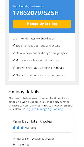 Read moreHave just returned from a week at the palm bay with my wife and granddaughter and what a gem of hotel this is,we had a 2 bedroom apartment which was kept spotless by housekeeping staff clean towels every 2nd day and fresh bed linen at least twice during our stay.the hotel has 2 swimming pools the rooftop pool is an infinity with amazing views over the aegean sea the main pool has loads of sunbeds available and never had problems getting 3 beds around the pool which also has stunning views of the sea there are steps down to the beach but also has a lift for anyone aswell as anybody with mobility issues,once down the steps there is a lovely beach bar with again stunning views of the sea the waters was crystal clear for snorkeling or just swimming lovely turquoise colour.For me though it's the staff who are the real stars of the palm bay so helpful and pleasant always there to take food and drink orders from pool areas or in the main bar areas lovely pint of mythos during hot days and decent selection of food during day and also in the evening watched 3 tribute acts whilst there who were all very good.Lastly I want to say a big thank you to the wonderful reception staff and the nurse on our last day my wife had a medical emergency whilst we were packing to come we only had the room till 1800 hours and as it stood we were not going to be ready explained situation to girls in reception and they were wonderful said to take all the time we needed and even better said they had a nurse on site who would come and have a look at my wife which she did straight away she said straight away my wife needed to see a doctor we explained our coach was due to arrive at 19.10 and we still weren't packed they said not to worry they would sort something out we got to Dr's at 18.15 I explained we had less than hour to get back finish packing and be outside hotel for pick up by now my wife are now thinking we are going to possibly miss our flight home so dr treated my wife and then took us back to hotel so we could finish packing whilst he filled out fit to fly paperwork and other paperwork we needed then reception phoned and said coach had arrived 10 minutes early and was waiting i explained we weren't ready and said to let the coach go as we didn't want the other guests waiting for us and explained I would get a taxi to airport once dr had finished paperwork 5 minutes later reception phoned again and god bless them and the coach driver they asked if he could possibly do his pick up from the other hotels and then come back for me my wife and granddaughter and bless him he agreed so on behalf of my wife lynn myself and granddaughter niamh I would love to say a big thank you to the girls in reception ,the nurse the dr and coacdriver for everything they done for us will definitely be coming back to see you all again next year and staying at the palm bay again once...