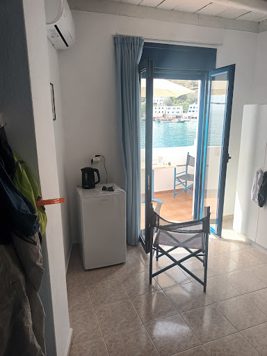 I stayed in Loutro with my two kids, 7 and 10 years old for two nights in late September. We had a triple room on the second floor with a gorgeous view overlooking the bay and the seaside promenade. Great location. ||||One of my best memories of our trip to Greece was sitting on this balcony and watching the sun go up, locals opening their tavernas, a man fishing and visitors taking a morning swim in the clear waters. At night you could hear people talking an laughing in the restaurants just outside and the sea. Loutro is a magical place. ||||The room itself was nice and clean and great value for money. Three comfortable beds, clean towels, a fridge, OK shower and toilet - what more can you ask for. Wi-fi worked great. The service was fine, we got our room already ay 11 o'clock and the lady was particularly helpful with ferry timetables and such. One of the staff even came running to the ferry when we were leaving and brought me my phone charger which I had forgotten in the room. I would definitely recommend Faros rooms. ||||PS. Contrary to what many people say, credit cards are accepted in many places in Loutro, also at...