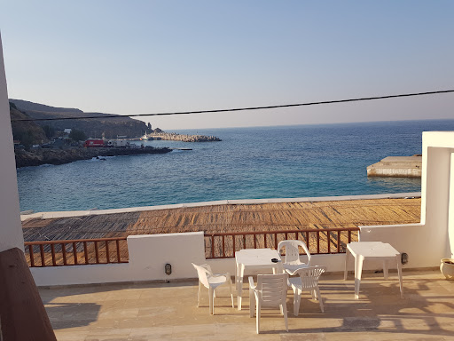 Arrived here without a booking. They had one free room which the owner was reluctant to show us because he was embarrassed that it didn't have a great view. Not sure why as it was exactly what we were looking for. The room is described as 'with balcony' rather than 'with sea view' but as the photos show we could easily see the sea. Room was simply furnished in true greek style with twin beds, a refrigerator, brand new and highly efficient air conditioning (a necessity in the 34° heat!), bedside tables, dressing table, wardrobes and ample electrical sockets. Bathroom and shower were small but not atypical for Greece. Room was also spotlessly clean. Location was ideal right on the sea front in the hub of the beautiful seaside town of Chora Sfakion. All in all the...
