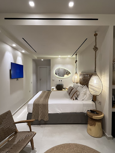 Read moreEnalion Sifnos – A Relaxing Beachfront Escape||We enjoyed our stay at Enalion Sifnos, a beautiful boutique hotel right on the beach—perfect for relaxing and unplugging while looking at the turquoise ocean.||We stayed in the beachfront suite on the first floor, which had a private balcony overlooking the sand and sea. It was magical to lie in bed with the windows open, listening to the gentle sound of the waves. The balcony was a wonderful spot, complete with a small table, chairs, and our own sun loungers. While it did lose the sun in the afternoon, it was still the ideal place to enjoy a glass of wine in the early evening before heading out for dinner. The hotel offers beer and wine for sale, and there’s also a small market nearby where you can pick up a bottle.||The room itself was nice, with a minimalist Mediterranean design. The bed was extremely comfortable, and we slept so well. The open bathroom concept worked well for us, with the toilet in a separate room for privacy.||The location couldn’t be better. You can walk right down the beach to many restaurants or the mini-market. We parked our car when we arrived and didn’t need it again for the rest of our stay—everything is within easy walking distance.||Few things to note: the prices are high but you are paying for a newer hotel right on the beach. The hospitality was not as warm as other hotels in Greece . People who run in are pleasant but don’t go out of their way to make you...