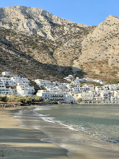 Flaros liegt direkt am Eingang von Kamares. Die Ruhe hier ist unbezahlbar – und gleichzeitig ist alles fußläufig erreichbar: der quirlige Hafen Kamares, mit dem Bus, Taxi oder Auto das charmante Städtchen Apollonia mit seiner legendären Taverna Drakakis und gleich drei persönliche Lieblingsorte für Ausflüge und Essen mit Aussicht: