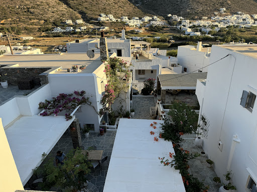 We stayed in this hotel for three nights in mid-September. The hotel is set on a hillside in a series of Cycladic cubes. It is some way from the ferry port and whilst free transfers are provided to and from the hotel they are forced to stop at a parking area that is a good 10 minute walk with luggage from the jetty - this because the port area becomes congested and traffic is prohibited. A walk from the hotel to the ferry jetty/bus station without luggage took us (and we are elderly) 20 minutes plus – it is uphill returning from the port. There is no airport on Sifnos. The hotel was always comfortable in terms of occupancy but we cannot even guess how many rooms there might be. Guests with a mobility problem would need to talk with the hotel and be very well aware of its location. The hotel fronts a small road overlooking a plain towards the mountains with views to the sea. The hotel has a small car parking area immediately in front but there are other car parking areas close by. There is a reception desk letting onto a small soft seating area and opening onto a series of semi-covered and open terraces. The hotel has a swimming pool on one of these terraces. The hotel also has a spa but we did not use this. We had booked a Junior Suite and this was well worth the extra charge. In addition to a generously sized bedroom there was a small separate seating area furnished with a sofa and table and a second TV. There was a fridge and tea and coffee making facilities. There was no safe. The bedroom itself had a work surface with an adjacent wardrobe but without shelving. Shelves were effected by cubbyholes in the concrete walls – this was fine, but at times impractical and possibly insufficient for a long stay. Everything was very comfortable with reasonable quality bed linen changed during our stay. The bathroom was a reasonable size albeit a difficult shape. Toiletries were excellent (Apivita!) and towels were soft and there were plenty of them! Housekeeping was fine. We had an oblique view of the sea from our balcony. During our stay it was both hot and very windy and some areas did suffer from blown dust and leaves. Wifi was fine. Aircon was in the seating area and not effective enough in the bedroom. We experienced no noise at all – not from outside or the room above. |Breakfast was not served till 08:30 (and often late) and was something of a disappointment. It was a buffet that afforded primarily a cold selection. The selection was not particularly wide for vegetarians. Tables for breakfast were set out on the terraces and there were no waiting on services whatsoever. Replenishment of coffee and any additional food items meant a walk back to the buffet up and down steps. There was an all-day bar but no evening restaurant. Hotel reception were very helpful in directing guests to various restaurants at varying distances from the hotel. Our first night – after a late arrival – was spent in the bar with sensibly priced wine and an enjoyable environment. The bar was exceptionally good value. The reception staff were very helpful and had good English. Housekeeping was excellent. We saw no evidence of large groups. For a port town this hotel stood out amongst all the others. There are plenty of rooms, but few actual hotels. We felt the location of the town afforded more benefits than looking at Apollonia the island capital. There are plenty of restaurants, there are plenty of bars, but just...