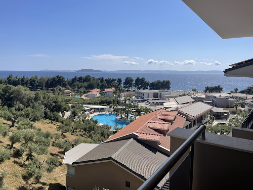 Recently stayed and whilst we did have a good holiday, we left disappointed for the price paid and 4* expectation. Weâve stayed at better 3*. Seems to have everything on paper for the perfect holiday however lets itself down in many areas. Firstly Jet2 airport staff / flight great. Transfer was nearly 3 hours (last stop) and includes changing buses. Jet2 rep only visits on an âappointment only basisâ and was not seen during our two week stay. Return pick up time was text message only. On arrival our cases were taken to our room via a golf buggy (nice touch), hotel is not for people who donât like stairs/steep hills. We were given a room thatâs balcony overlooked staff areas / rear of main restaurant. Whilst it had a side sea view, the balcony was not used due to lack of privacy/staff smoking. All other rooms look like theyâd have beautiful views (as the main restaurant does). Room was nice and a good size, only downside was the bathroom flooded following a shower. Fridge and a safe in the room (safe was not anchored to anything though so pointless). TV only had bbc news in English. Air con was possibly too good as position blowing straight onto the beds at the height of summer meant either being freezing or boiling at night no in-between. Poor sleep quality for the two weeks. Cleanliness was ok however bed sheets only changed once during a two week stay on day 10! Towels and bins changed daily if you press a button on the door to let them know youâd like room to be serviced. |After dumping the cases we changed into swimwear to find the pool and found something Iâve never seen in over 20 years of traveling, nobody in or around the pool at 2/3pm in August summer holidays! No atmosphere, no music but sunbeds galore. The kids loved having the pool to themselves, it just felt weird. No jacuzzi/hot tub either as pictured on website/jet2. It has been covered over to provide additional seating. Thinking it was just a changeover day we went down to the âspa poolâ on the second morning to be even more amazed, no towels down or people poolside at 10/11am either. This time we realized the, once white drainage grates around the pool, were green (they stayed green the whole of the 2 weeks we were there and even after complaining to reception to clean the pool). Swimwear was stained green and thrown in the bin. On arriving home both our children had infections that Drâs said were from dirty pool water. Reception said we could use the other hotels facilities and pool so relocated to the âbeach hotel poolâ, which was much better, although still not busy but in a good way. We only met one other English family during two weeks. Other nationalities tended to use the beach more than the pool. No need to reserve beds at beach pool as always got one (or four) even after lunch. A daily entertainment programme is on a screen at reception and restaurant; all activities were at the beach pool/beach itself and included yoga, aquaarobics, darts for kids etc. Entertainment team not the best weâve come across during the day but the girls at night were good dancers and nice to the children. |As many other reviews point out the beach is beautiful, âŹ15 euro for two beds and an umbrella or âŹ25 for vip which we used but apart from a nicer bed had no different service & still no towels included. You can get waiter service from your beds from a snack bar on the beach and food was nice (pizza, burgers, gyros). Disappointed to hear foul language in songs on the beach sound system and beach pool for a âfamily resortâ, even our teenagers reaction was âwowâ at certain choice of songs. We ate at the only restaurant on the beach, which has a nice view. Food was good if not a little pricey however no kids menu. |We went half board and the food was probably a highlight. Breakfast was great. Lots on offer for evening meals too (obviously got samey after two weeks). Surprised that traditional Greek dishes like moussaka was only on once during a fortnight stay. Gyros on every night which were ok as were the soups, salads and deserts. Restaurant has a lovely view over the âspa poolâ and a sea view. Staff were ok if not a little overworked (Australian lady as mentioned in other reviews the best of the staff, always a lovely welcome received). Drinks were expensive in restaurant (âŹ3 bottle of water, where as âŹ2 at the onsite bar or âŹ1 at onsite minimart for same thing!). |We tried to change board basis from HB to all inclusive due to drinks prices however reception were unable to cater for this. They did say if we had asked them on day one or two of the holiday and not day 3 they wouldâve accommodated the change. The drinks however were good as were bar staff and kids had nice mocktails each night. Alpha Beer is on draft. Cocktails are âŹ11/12 but good and strong! Sport/football was on the bar tv once during our two week stay. |Entertainment was good if you like to dance (Greek and Latin nights). External singer every Wednesday and quizzes / bingo ouzo other nights. Mini disco 8:30-9pm with face painting. Kids have a few table tennis tables, basketball pitch and arcade type area to keep busy on an evening. |Neo Marmeras is beautiful and worth a trip (take local bus not hotel shuttle) âŹ2 and 10 mins away. Nikiti is also lovely (busier than neo marmeras) again âŹ2 on local bus that picks up outside hotel, only 20 mins away. |Busy road between the hotels is bypassed by a bridge from âspaâ hotel to the nicer âbeach hotelâ. |Other half had a massage and said it was good âŹ55. |Unfortunately the famous Greek hospitality was not on show here and we will stick to family run hotels from now on. If already booked youâll have a good time just stay at the beach...
