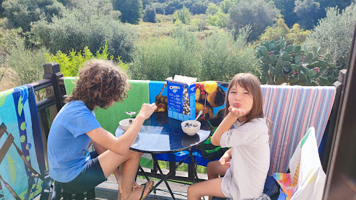 The villa is situated in a nice, green area. It has a nice garden with a playground for children. The owners are very nice and tried to solve any problems, you fell welcomed. Noni served us with a home-made cake and frape / juice when we arrived. The apartments are large enough, we stayed in an apartment with two rooms and two balconies, one of them with a table and chairs where you can have breakfast. ||Although is near the main road, there is silence, the area not being so circulated. I liked that there was nets against flies at the balconies's doors and the kitchen is well equipped, including microwave.||The minuses were that, in 5 days, we had 3 times problems with hot water, not all day, but in different moments of the day - for example, in one evening we came back at 9 pm and there was no hot water (the water was really cold and you can't take a shower), another time in the morning.||The garbage was taken at every 2 days, this can be an inconvenient especially at the toilet. Another minus was the very bad drain from the bath's floor, which lead to a bad smell in the bathroom. ||The cleaning was ok, made at every 2 days, when they changed towels and beds.||A very good idea was the different color towels, so that every member of the family could...