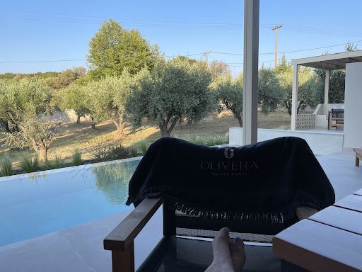 Today is our third day staying at Olivera Suites Sarti, and I have only good things to say about it. I don’t often write long reviews, but felt I had to this time. Based on the website photos, this brand-new establishment looked beautiful. Up close, you realize photos don’t do it justice. Upon arrival, you go through an olive grove with mature trees; the well-paved driveway leads to the back of the building, where there is ample parking space. The main building is modern, with clean lines, but some stone walls and earth colours ground it and make it fit seamlessly with the rural surroundings. We were greeted right away by the friendly staff, huge smiles on their faces made us feel welcome from the get-go. They took us through our suite, explaining everything. There is obvious attention to detail and quality of design, from the fixtures, to furniture, to fabrics and the fluffiest of towels. Someone obviously put a lot of time and effort to anticipate everything a guest may need. There are ample power outlets, and a very good quality, but lightweight hairdryer (pet peeve of mine, so often hotel hairdryers are subpar). Toiletries and the room diffuser smell divide and exclusive, and they round up the sensory experience. To top things up, there is a private veranda overlooking the olive grove, with our very own swimming pool, sofa, dining table and chairs, sun umbrella and amazing sunbeds. Hospitality is made memorable by the people that take care of you, and taken care we are. While the staff discreetly let us unwind and enjoy our room and pool , they are only a call or message away to help with everything, any enquiries, from breakfast, delivered to our door at the time of our choosing, to recommendations on where to eat, swim, sightsee. Overall, our stay at Olivera, as you can tell, is heavenly. We will be sad to leave and are already...