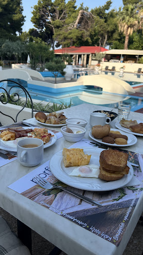 Read moreThe hotel is beautiful. There are big rooms and small rooms. First we got a big room called PROMO room. It was on the first floor. It has no balcony at all. Maybe that is better for couples but with a child it is not possible because children go to bed early and you and your partner feel like in a prison. So, we asked for another room. It was solved the next day. We got a room no.409 wich is on the ground floor in the garden. The rooms 406, 407, 408, 409, 500, 5001 are great for children because you can let them play on the grass in fron of the rooms. That are not new renovated rooms but very nice rooms. There are new rooms accross the garden. I hace not seen them inside but they have glass from the bottom to the top and similar to these rooms. Reception persons are great with good english. Restaurants chief and other persons there are so kind that I cannot describe. All recommendations for their restaurant. They have baby chairs that is very good. Half Board is very rich with meals, sapads, fruits and other. Too bad they do not have lunch as Full Board offer. But you can eat a la carte menu for lunch. Pool bar is ok. The pool is big, not busy, always have plenty of space there. There is a small one and a big one with I think 1.7m depth the largest. They have a children playground with lot of amusement there so if it is sunny they can play there in the shades. The beach has natural shades. The sunbeds are 6 eur. That is the only thing I dont like. My suggestion it is better it is free for the guests of the hotel and make my price for arrangement 50 euros more. It is nicer that way. The beach has sand and rocks and grass. I am not delighted too much. But you can always go 12km to Lagomandra beach in shades or other beaches before. Nikiti is 3km away and you can go each evening there and walk with kids or just have an ice cream. The parking spaces in the hotel is poor so you need to park in the street not inside the complex. But there is no space to be wider. It is a minus. And the big problem after floods in June here are mosquitos. There are a lot of them and you can put Autan or Fenistil gel but no help. You will be all eaten by them. They have music live one day per week and some dances. At the end we paid the tax for each person around 15 eur. But all in all this was a great choice for us and we are sure we will come the next year if they can promise...