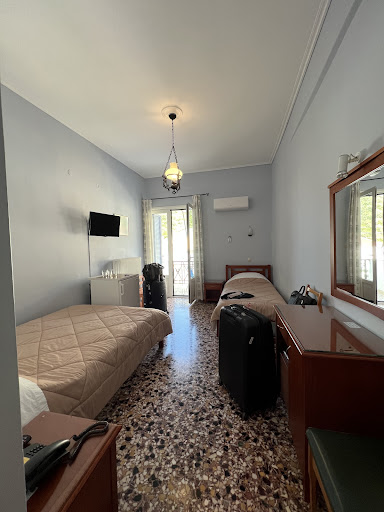 Read more😊: A truly lovely location in the slightly old-fashioned (in the best possible way) village of Tiros, this family-run small hotel was really super. High-ceilinged rooms with good a/c and a decent size balcony with super views over the sea and the little harbour. The front balconies are in shade in the afternoons too!They offer a very tasty breakfast. They have a dozen sun umbrellas and sunbeds reserved and free for Blue Sea Hotel guests on the (stony) beach immediately opposite the hotel just a few steps away - perfect!. 😢: The mattresses are a bit hard, otherwise...