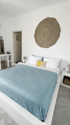 Το δωμάτιο εντός είναι ευρύχωρο, με μεγάλο κρεβάτι με άνετο στρωμα, τα μαξιλαρια ήταν πολύ μαλακα για τα γούστα μας αλλά προσαρμοστηκαμε. Έχει κουζινάκι πληρώς εξοπλισμένο για να φτιάχνεις το βασικό πρωινό που σου ανανεώνουν κάθε πρωί ή να φτιάξεις ο ίδιος ότι θες αφού διαθετει ψυγείο. Οπωσδήποτε πρέπει να προμηθευτείτε μπουκάλια με νερό γιατί το νερό στο νησί δεν είναι πόσιμο. Το μπάνιο ήταν επίσης ευρύχωρο με ντουζιέρα και γενικα πάντα καθαρό και με ζεστό νερό, όσες μέρες μείναμε!