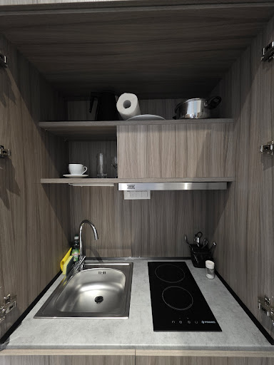 I had the pleasure of staying at this property with my father for a business trip, and overall, it was a fantastic experience. The building is new, with a stylish design, and the rooms are modern and clean. I stayed for two nights, and each of the rooms had a small kitchen, which I didn’t use, but it’s a clever addition if you want to prepare something quick. The shower was particularly amazing, and the comfort made the stay truly worth the price.