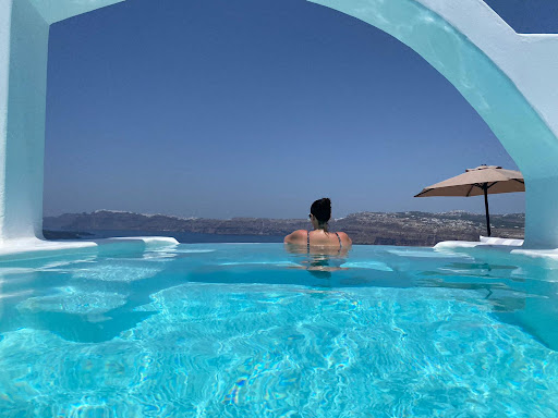 Of course, I also have to mention that the suite is super cute and exactly the vibe I was going for. It was spacious and the views were expansive. Sure, we could've stayed in Oia but I am not sure we would've gotten the level of service nor have as much space as we have.