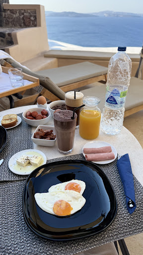 Rooms (4.5/5): Clean, well-kept, and comfortable, with that authentic Santorini cave-style charm. A few small issues: the shower isnât a fixed head (you have to hold it), the bath plug didnât work properly, and the minibar wasnât fully stocked. The TV also had no channels (a HDMI cable would go a long way for those who like to unwind with a show at night). But honestly, with those views, who needs TV?