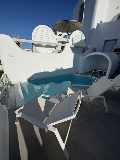 Read moreWe stayed in the 3-bedroom villa in early June. This is an amazing hotel with stunning views of the caldera. It’s even prettier than I had imagined! Inside the villa were 3 bedrooms, 3 bathrooms, precious kitchen (with cute SMEG refrigerator!), dining/living area and a full private fitness center downstairs. One of the bedrooms is much smaller than the others. We had our own private outdoor pool and outdoor dining area where a full breakfast was served every morning. There are just 4 units at this property so the service is outstanding. The staff were fabulous and assisted with reservations, transportation and other services as needed. We felt pampered the entire time. The hotel is located in a perfect location in Oia slightly away from the huge crowds, but very convenient to nice shopping and just down from the Passagio Coffee Shop, which was the pick up location for all of our tours and taxis. Everything in Oia was within a reasonable walking distance. Only two things to note. The pool is very HOT (not refreshing) due to its small size and the high outdoor temperatures. There are also many steps to go up and down to the main street level. The steps are a good workout, but they are uneven, steep, and stoney so they could be challenging for anyone with health or disability issues, but the staff is there to help carry your luggage down and up and we appreciated the exercise. Huge thank you to Adam for his graciousness and service during our stay. This hotel was our splurge during our Greece vacation and it was...