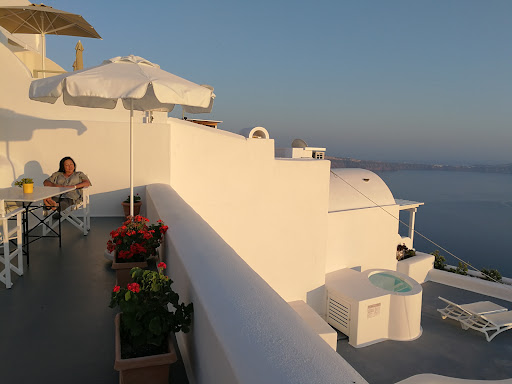 Read moreEvery other review has mentioned the view, I’m sure. They are probably all spot on: it’s unbeatable. If you’re looking for that stereotypical Santorini experience—the view, the sunset, the quaint, white, barrel-vaulted villas—bingo; this place nails it. But it’s everything else that makes it the place to stay. |For starters, Olympia was so helpful from minute one. She booked us on a catamaran cruise (a must-do) and handled everything. We were maybe a little wary at first, as sometimes hotel owners send you to their friends and you aren’t really getting the best deal. But the company she recommended was half the cost of what we were finding online and the experience was unbelievable. (Check out my review of Spirikados Sailing Cruises.)|Olympia also recommended and booked an ATV rental for us (again, slightly cheaper than what we were finding online), and that was an equally enjoyable experience. |Breakfast daily is lovely and more food than you really need. There could be more coffee and a better device to keep it warm, but that’s a minor complaint. |There is a kitchenette, but you really can’t cook a meal as there are no pots or utensils, so it’s really for aesthetic value only. The fridge and nearby market is handy since you’ll need to keep a supply of drinking water on hand. |The bed—at least in our apartment—is in a loft that is low on the sides causing a head-bumping hazard the first time you go up there. And if you’re nervous about climbing a ship’s ladder to get to your bed, then choose another place. It’s slightly sketchy or uneasy feeling at first, but we found it a minor thing. When I’m in my 60s and unsure I might start thinking twice about it. |We love finding unique and wonderful places to stay on vacation, and this is among the best...