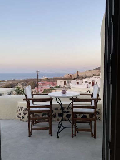 Read moreMy boyfriend and I stayed for a week in July and overall, we had a lovely time. If you don’t mind a very short walk into Oia (10 mins tops), this is a great location, quiet, and cheaper than those closer to the main town.||||We watched the sunset from our balcony a few nights instead of going out as we had the perfect view. One night I cooked dinner at the apartment as there was a small electric stove and some pans. Enough to make pasta! Breakfast was good each morning; we had yoghurt, honey, jam and marmalade, Pitta bread, olive paste, sun dried tomatoes and capers, cheese and ham, cereals and hot drinks. There wasn’t fresh milk though but there’s a few shops nearby to buy. ||The apartment itself had a loft where the kitchenette was and downstairs was the bedroom and bathroom. Comfy bed, though a little on the small side if I had to make any criticisms. Also- the shower was a little temperamental (going hot and cold, didn’t always stay on). Plenty of space to hang clothes with hangers included. Fan in the room was definitely a life saver as it got HOT in July. We had it on all night. ||||The owner was very lovely and helpful, she even gave us some salt when my boyfriend asked - I came down with a throat infection on the trip and didn’t want to pay mega for the antibiotics. Salt gargle saved me! ||||Anyway.... lovely place, totally recommend. Meze Meze (restaurant) nearby is well worth a visit too if you want to have a night close to the hotel rather than...