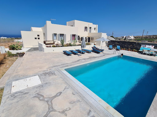 beautiful villa - very clean and modern. Extremely spacious, bright and airy! amenities were fab - the owner had made sure things were in the villa for us like: cake, coffee, beer, wine, milk, water, juices, shower buff things, toothpaste, toiletries etc. All the normal things too such as hairdryers, plug socket converters. owner is amazing - she met us at the villa to show us round and gave us her number for anything we needed. She happily recommended restaurants, made bookings for us and arranged taxis for us too. outdoor area is lovely - really good sized pool with plenty of seating and sun bed options. location is fantastic - 5 minutes from the airport (but not noisy at all), and 5 minutes into Fira by car (you can walk this in about 20 minutes but it is all uphill). peaceful and private villa. the beautiful sunrise can be seen from the master bedroom windows each morning.