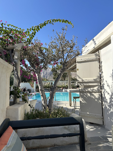 The woman at the reception was really nice! The first day she gave us a map of Kamari and of Santorini, and she's talked us through the island. What places to visit, nice restaurants, she even gave us a timetable for the bus. This woman was so helpful, she made it way easier for us to find our way. She was also very interested and it was nice to have little chats with her.