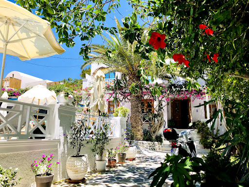 The rooms are basic but clean. If you have a choice take the room upstairs. Our room was on the ground with very limited light like in a basement and hotel staff running all the time just outside of the room. Air conditioning saved our lives. In the summer you cannot live without it as it was 30 plus degrees of Celsius outside. I think owners should clean up the air conditioning as the smell was not fresh. Other than that room is cleaned up every day and they bring you new towels. On Greece islands you cannot put paper to the toilet so it’s really a must to have the bin empty every day. You will get also some small washing cosmetics. The shower is old style with material cover so the water is in the whole bathroom after every usage.