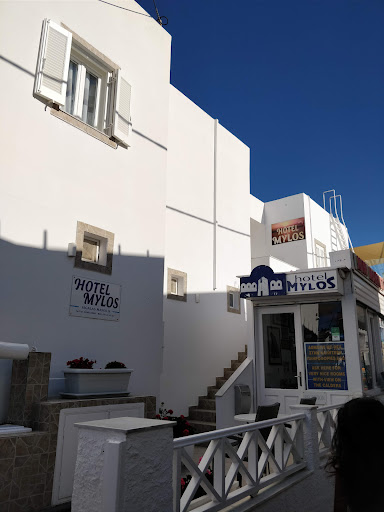 Mylos hotel. |What a view! The room with two twin beds as requested was small. Only one of us could walk across the foot of the bed at a time. There is a mini refrigerator and a safe. There are several outlets which was helpful. The hanging bar in the room was a bit high to use. However, I am somewhat petite. |The shower was a good size and the rain shower head had good water pressure. The trash bin in the bathroom was nice tight fitting so no odors from all the toilet paper in it. Just a side note, you are not allowed to flush toilet paper anywhere on the island. |The gentleman at the front desk was wonderful. Very kind and explained the bus system, provided a print out time table of the different lines and provided directions on how to get to the bus station in Fira (about a 15 minute walk). One day when we had to leave before breakfast times, he provided yogurt, tea, a kettle for hot water and cake for us the night before. ||Breakfast is limited due to no full kitchen. |If you stay an extra period of time and tire of the same thing, you can bring some alternative spreads for the bread. I saw someone else with some hummus. But the view while eating breakfast is unbeatable! |You can also watch the sunset from the comfort of your balcony and no crowds. Because the path is in front of the hotel, there are not a lot of people walking by. The only people that walk by are those that stay in other hotels below. |There is a shop right in front of the hotel where you can buy bottled water and snacks. There are several reasonable food take out places a minute walk away. There are also several sit down restaurants within 1-2 minutes walk. I can recommend Vanilla Sky. Hotel Mylos is near the action, but is peaceful. |All in all a lovely stay on the caldera during high season that didnât break the bank. The hotel was recommended on one of the Trip Advisor forum. It is possible to have a caldera view and not destroy your budget. Iâm so glad we...