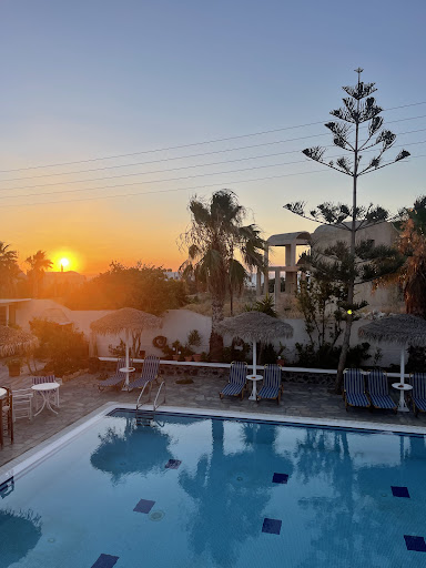 Read moreWe stayed here in July for 5 nights. The hotel is a 10/15 min walk to the beach and the main strip in Kamari and it’s about 5 mins to the outdoor cinema.||I was there with my two sons (12 and 17) and we used to walk back between midnight and 2am most nights (the karaoke bar on the strip is so much fun) and we always felt safe.||The rooms are typical Greek style. Quite simple but spacious with aircon and a good hot shower and the beds are comfy.||The pool area is really nice and was very relaxed when we were there. You can buy drinks and snacks from the pool bar, I’d just suggest picking up your breakfast the night before from one of the supermarkets that are open until about 2am near the beach.||The owner is really helpful. I WhatsApp’d him before we arrived as we needed to go straight to the Irish bar to watch a football game and he dropped us off as soon as we’d checked in. He can also arrange a taxi to and from the airport. You can get a bus but you have to change buses and then walk 15 mins with suitcases, so I’d recommend pay...