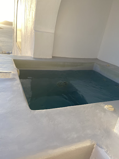 Read moreDopo aver cercato un alloggio al centro di Fira tra varie proposte mi ha colpito subito questa struttura con piscina privata sul balcone e una vista mozzafiato sulla caldera oltre a una stanza da letto che sembrava davvero spaziosa e confortevole. Prenotata subito (seppure ad un costo non irrisorio) è stata grande l'aspettativa.... Arrivati sul posto l'amara sorpresa. Nessuna reception o titolare ad accoglierci: solo il cameriere di un bar lì vicino che con fare abbastanza annoiato non ci ha chiesto nè documenti nè ci ha dato un granchè di informazioni (unica domanda "Quante notti restate?AH solo una") e ci ha poi dato frettolosamente una chiave sparendo nel nulla. Arrivati nel corridoio già alcuni segnali che qualcosa non andava: sacchette di cemento e di calce ammucchiate accanto alla porta della nostra stanza assieme a mattonelle, calcinacci e altri stumenti da muratore oltre ad un sacco enorme di panni sporchi che letteralmente impedivano il passaggio con le valigie (bagagli a mano). Entrati nella stanza la conferma che effettivamente c'era qualcosa che non andava: una stanza per nulla simile alle foto sponsorizzate sul sito (e non parlo delle foto generiche della struttura ma di quelle associate alla specifica camera che avevamo prenotato), molto più piccola senza armadio, senza porta del bagno (anch'esso minuscolo) e un balcone che a stento eguagliava un terzo di quello pubblicizzato (senza spazio per le sedie, senza la favolosa vista promessa in quanto affacciava in un vicolo e solo di sbieco sulla caldera e con una vasca idromassaggio che a stento eguagliava la metà di quella sponsorizzata sul sito e che per metà era all'ombra sotto un altro balcone). Non mi dilungo sulla pulizia: basti pensare che sul pavimento e nel letto c'erano ancora i capelli degli ospiti precedenti e l'acqua della piscina esterna era torbida. Quando ci siamo lamentati con educazione che quella non era la camera che avevamo prenotato il ragazzo del bar ci ha detto che il titolare non c'era e ci ha dato il numero di un'agenzia locale che parlava solo greco o inglese (creandoci non poche difficoltà) e col quale abbiamo dovuto parlare tre volte per sentirci dire che non c'erano più camere disponibili (e che non comprendeva il motivo della nostra lamentela in quanto le camere a suo dire erano tutte uguali) offrendoci tutt'al più un'altra stanza in un'altra struttura che si trovava in un'altra zona (non a Fira) ma con costi di trasporto a nostro carico. Alla fine dopo due ore di telefonate chiuse in faccia, operatrici che ci chiedevano di attendere o di richiamare siamo stati costretti ad andar via e a trovare un albergo all'ultimo minuto che ci è costato ovviamente di più.||Forse altri sono stati più fortunati prenotando la camera migliore (quella effettivamente sponsorizzata) ma noi no. Quindi no, non me la sento di consigliare questo posto a nessuno: ti attira con la posizione e con foto non corrispondenti alle camere prenotate e poi ti lascia in balia di centralini...