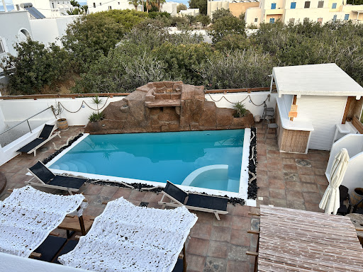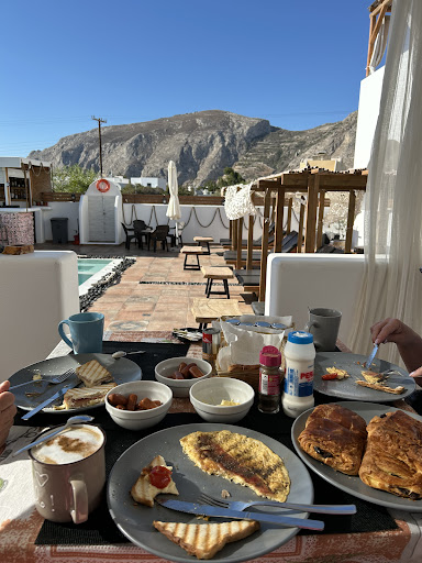Read moreWe stayed for 3 nights and were very pleased with the large and well equipped room, good air con, comfortable bed, small kitchen area (unused by us!) And a lovely pool area. Threre are just 4 appartments here and the owners, Dino and Sandy, who are very friendly and accommodating live on site. You can order breakfast if you choose to and snacks around the pool, along with drinks from their bar. The beach is 5 minutes away where you will find dozens of restaurants who give free sunbeds if you either have a meal or order drinks or snacks. The top 2 trip advisor restaurants are 5 minutes walk. There is a supermarket 5 minutes away also. We hired a car organised by Dino and delivered to the property for 40 euros for the day, which is long enough to see most things on the island. Be aware that taxis are expensive and buses are plentiful but all route to and from Fira. There is some noise from planes landing but this would be the same...