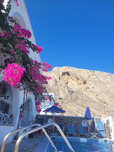 Great location at one end of the huge beach, but no longer does food (some web sites say it does) and the pots and pans were both limited and in a bad way. But for a 2 star place, maybe that's OK. Plenty of eateries nearby. And, if this sort of stuff adds flavour to your cookie, beside both the original site of St. Irene's chapel that gave the island its modern name and, if you fancy a 45 minute walk up the adjacent hill (no toilet at the top), near the ancient Greek/Roman town of Thera originally inhabited after the eruption that gave it its ancient name. Location on Google maps is wrong - nightmare if you're arriving late after a long journey - look for MMStudios, not Maria...