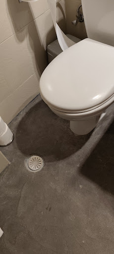 toaleta w bardzo złym stanie technicznym (odchodząca farba, podłoga pomalowana farbą zamiast wyłożona płytkami),