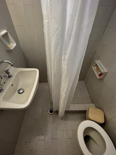 The bathroom was the most disappointing aspect of this hotel. It was very dingy and had clearly not been upgraded for decades. A few small touches like a regular bathroom mirror (as opposed to a tiny flimsy plastic one), a small vanity or countertop to store toiletries, and an actual shower cabinet that can be cleaned instead of a curtain, would make all the difference.