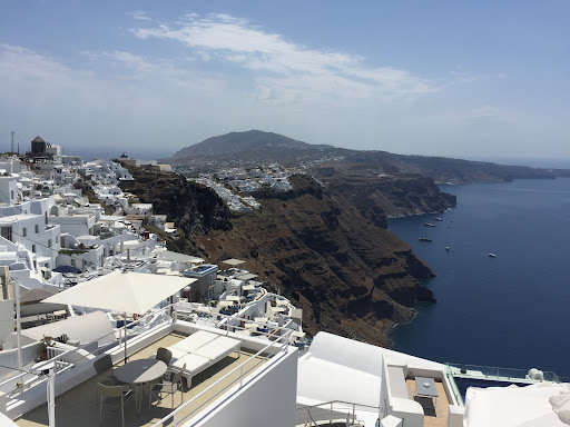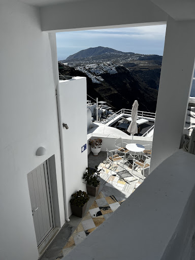 Read moreArrived in Imerovigli from Perissa by taxi that stopped across from a church next to a small square. The entrance to Veranda View was a short walk down a side street, which seemed more of an entrance to a home than hotel. The property is small and the few rooms are below a main house above. My room was just below the stairway from the main walkway that winds around the building and continues towards the blue-domed Anastasi Church. A small balcony included with my room was just inside the small gate off the walkway that then led to the stairs down to the rooms. Taking up all of the balcony space was a small round table with umbrella and chairs where I sat to enjoy the view and welcoming drinks from the owner Antonia. A larger balcony in front of the rooms provided good views of the caldera, just like pictures that you often see of Santorini. It included a large round table with chairs and umbrella for shade that’s good for meals and taking in the views. Cushioned seats line the walls of the front rooms, which provided nice spots to enjoy the sunset and evening breeze. ||My room was small and narrow with bed on one end and bathroom on the opposite connected by a narrow hall. The room is limited to 1 person or 2 people at the most. The bathroom was reasonable in size and included a nice tiled shower. There was a large closet but no dresser or drawers. Glassware, plates, utensils, hotpot, tea/coffee and bread were provided along with complementary large bottle water in the mini-refrigerator. Room and bathroom were clean, well kept and nicely decorated. Room has AC useful during the hot day, though opening the window provided a cool breeze at night. Two adjacent rooms appear to be larger studio-like apartments that might be better for families or shared by couples. Maybe the only downside to staying here is that there’s no pool. ||A few restaurants, cafes, small grocery stores are within walking distance, but maybe not as numerous as in Oia, giving Imerovigli a more relaxed atmosphere. Bus stop to Oia is about a block or so away. You can follow the walkway that then leads all the way to Oia (nice and easy through Imerovigli but hot, dusty and harder for the last part to Oia – tip, take the bus). On the walkway before Skaros Rock is the Agio Georgios Church (yes there are lots of churches in Santorini), where you can enjoy the sunset without the crowds in Oia. Enjoyed my stay at Veranda View in Imerovigli where sunset viewing seemed just as good as in Oia but much less crowded and...