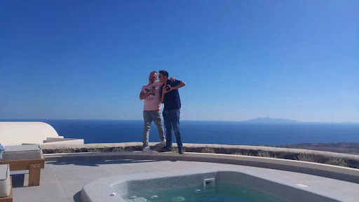 Read moreAm Flughafen angekommen wartet schon der liebe Christos und fuhr uns zur Villa. Die Villa verfügt über 3 Schlafzimmer mit seperaten Bad für uns beiden war die Villa etwas zu groß eigentlich aber ich habe sie ausgesucht wegen der Lage nicht so weit von Fira und Oia genau dazwischen. Die Küche war sehr gut ausgestattet und jeden Morgen kam Christos und hatte uns lecker Frühstück gemacht. Man muss für die Service extra zahlen. Der Whirlpool war ein Traum, jeden Abend haben wir uns wie kleine Kinder darauf gefreut dort den Abend ausklingen zu lassen. Der Außenbereich war fantastisch man hatte einen wunderschönen Ausblick auf den Insel Anafi das einzige Manko war aufgrund der Lage könnte man nicht wegen der Anhöhe den Vulkan auf der anderen Seite sehen.