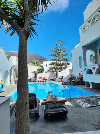 Read moreWe booked this hotel as a last minute budget holiday for 2 adults & a 15 year old girl. |The hotel is located 5 minutes from the beachfront in Perissa. |It is a very quirky hotel and in some areas is a bit tired looking which we had seen on other reviews however don’t let this put you off. |The staff were incredibly hard working and very friendly. The rooms were cleaned daily and sheets and towels changed. |The mattresses in our room were new although a little hard for my personal preference. |The WiFi, safe and air conditioning were all provided free of change which was brilliant as I know other hotels charge for this. |There were plenty of sockets in the room for changing devices and a tv although we didn’t turn this on. |There was a large fridge for sandwich supplies and drinks/bottles of water (you cannot drink the water in Santorini) and a kettle although we didn’t use it. |There was 3 mismatched cups & glasses but no utensils/plates/bottle opener but this didn’t bother us as we had taken water bottles and were able to buy wooden knives at the supermarket and brought screw top wine. |Our room didn’t have an airer or washing line, others did, but we used the patio furniture to hang beach towels/swimwear on with no problems. |The bathroom could do with an upgrade or refurbishment especially the floor as it looks worn but it was always clean and didn’t bother us at all. If the hotel/rooms had been upgraded or refurbished I’m sure it would put it well out of our budget as it was an amazing location with lovely staff. |The hotel has a small pool area with sunbeds which looked clean and there was some inflatables you could use. We only went in the pool once and only for an hour later in the day as we preferred being at the beach. |There are plenty of different tavernas at the beach that offer sun beds for free if you buy drinks from them which we did. |The sand is black and gets very hot so you will need some beach shoes to wear to the sea. |The hotel is also very close to the main road where you can catch a bus to explore the island. Alternatively the hotel staff were able to help me book a tour with a local company that incorporated all the sights and a boat tour to the volcano. |We really enjoyed our stay at VP Belair and would love to return one day. |If you are looking for a hotel that provides food,drink and entertainment on site then is is definitely not the place for you. However if you are looking for a cheap friendly quiet hotel close to the beach and tavernas then I would recommend...