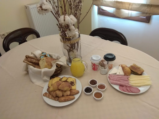 This small "koubouris village" is nicely located 2 kms outside levidi village. It consists of several houses, big enough for family use. Some of them are very isolated but some others facing the main road and are noisy. Our house was one of those facing the main road. The house looked nice and clean, but the TV was not working properly, the remote control had no batteries, the shower was broken, some electrical sockets out of position, some of the shutters were broken and blinds (the particular house had "romans") installed in the wrong position so that someone couldn't easily open/close the windows or the shutters. The hydromassage in the shower cabin was not working. |The kitchen was fully equipped.||The breakfast was rich although i would expect something more traditional (hand made jams/cakes and not "plastic" croissants and artificial orange juice. Hope the management reading us to improve...