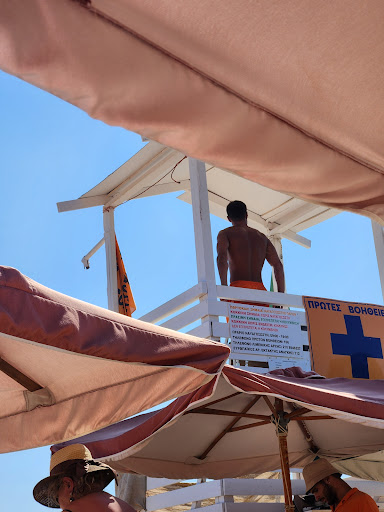 After settling in my wife and I were playing 'racket ' (beach tennis) and an elderly man came and told us we needed to move because we were "endangering a baby" (as he motioned to our 3.5 year old daughter). We informed him that the "baby" was our daughter and that she was fine (we intentionally were playing near her so she couldn't go into the water without us). He left and a few minutes later a security guard came and told us we would have to leave the beach and go to the public beach nearby to play racket. We asked him why that was and he said it was "political" (i.e., because the old man complained). We answered that if it was only political and not a rule then we would keep playing. He then claimed it was a rule, so we asked to see the list of rules and he refused and said there wasn't one. At this point two other customers came and claimed we were foreigners spreading COVID (we are expat residents) and we were breaking the law and that he was calling the cops. The security guard didn't make any real attempt to calm the situation down or ask this other couple to exit the conversation. The security guard went on to say that he himself is the rule. I asked for a refund so we could just leave (we had been there only 30 minutes) which he also refused. The other couple then somehow convinced the security guard that I actually knew Greek because "he heard me speaking it" and then the guard refused to speak to me in English.