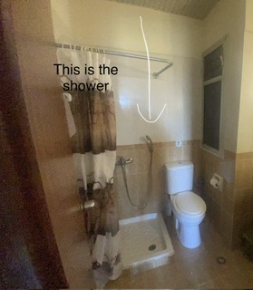 You can't take a shower without banging yourself somewhere. It's tiny, and you can't wash yourself without water running on the floor.
