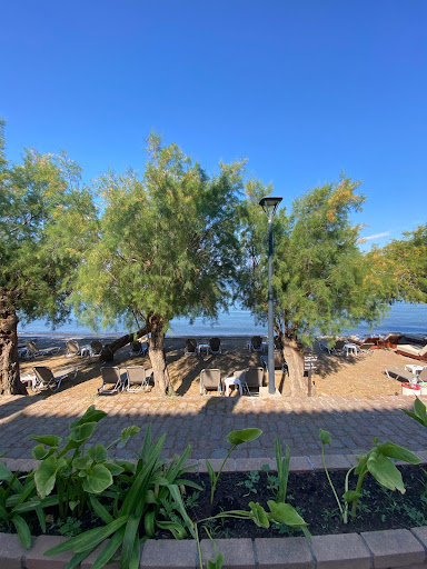 Read moreVery nice location opposite the beach, close to the centre of Molyvos and not too far from the harbour.||||The beach offers sun loungers and umbrellas at 2 euros each and also showers. It is stony as you walk in, but then becomes sandy. The water was fresh in late June and incredibly clear. Great place to swim.||||The palm trees between the hotel and the beach did block most of the view of the sea, but then again, they did provide green and shade.||||The breakfast buffet offered a good choice which could be taken outside under the trees looking over the beach. What I really liked is that although the buffet closed at 10am, this was "Greek time", so it was usually possible to pop back for seconds or another last cup of coffee before it is all cleared away. I do understand that a hotel needs to get on with other things, but I really dislike a strictly enforced sharp cut off time.||||The staff were very helpful and friendly, especially the lady at the breakfast buffet. The reception manager arranged a laundry service to collect and deliver for us who did a very professional job, although it was quite pricey.||||Negatives:||The rooms are rather small.||||One towel rail was broken.||||The air con was over the entrance door in a lobby area and didn't cool the...