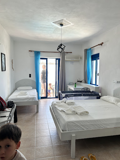 Read moreIf you are looking for simple accommodation in a great position in the village, these are the studios to choose. On booking, we were disappointed to find that the rooms overlooking the pool had gone but after a few days at Pavlis we decided we preferred our room (No 6) which had views of the village, sea and the pool and was completely private which the newer ones were not.||||The kitchen was well equipped and included an electric kettle which is not always the case in Greece but the only cooking facilities were two electric hot plates, no grill or toaster which we would have preferred but it did mean that yoghurt and fruit was the order of the day first thing in the morning! There was also a hair-dryer and iron should you need them, as well as a safe and air-con (both of which payable to Mr Pavlis). Downsides were the studios were only cleaned and bins emptied twice a week and the beds which were extremely hard. Plenty of hot water, always sun beds and always peaceful around the pool (no children!) apart from the occasional irritating beep of mobile messages . . .||||Could not fault any of the tavernas in the village and would also recommend Christopetro – less than 10 minutes drive away towards Votsalakia (a very touristy resort – just the road running through with tavernas and bars (advertising football, English breakfasts and cocktails – horrid!). Would also recommend Psili Amonous beach – gently shelving sandy beach with one taverna/bar – you need to park on the side of the road and walk down the hill. ||||We stayed the first two weeks in July and it was very hot – 32 degrees at 9.00am in the morning but it did get quite windy during the day so...