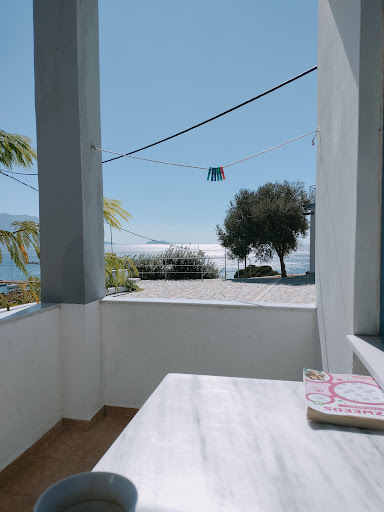 There are two 'Pavlis studios' in Marathokampou. One is at Ormos, just above an attractive harbour and shown in this photograph from Trip Advisor. I did not stay there! I stayed at the better located Pavlis Studios 4 miles down the road in Kampos. Better because it across the road from the beach - and at the same level. Better because there are restaurants, supermarkets, a bakery and gift tourist shops within easy walking distance (like 3 minutes). The apartments were well maintained, clean and quite modern. Mine had a shower, toilet and wash basin in the bathroom, a double bed and a tiny kitchenette with a hob (never used) and a fridge. The room was serviced every other day. Outside was a balcony with a table and chairs. Inside a wardrobe for hanging clothes, a desk with a chair and other useful shelves for storing things. Perfectly large enough - with good air conditioning and insect repellent protection on the windows and patio doors. The crockery and cutlery looked like cast offs bought in a jumble sale and there was no wine glass - but an assortment of other glasses - non matching. This is a point to be improved - it just let the place down a bit. A kettle was provided - but no toaster. There was wi-fi but it was poor and slow - my apartment was Number 8. The gardens surrounding the apartments were lovely - full of colour - and the swimming pool with a bar (closed at 6pm) and sun loungers was gorgeous. Car parking at the front was free. I stayed 7 nights and only paid 372 euros in September. The location was perfect - you could be on the beach in two minutes. The welcome was friendly and I was even given a complimentary glass of wine! I liked the place - but do make sure you book the right Pavlis studios. You want Pavlis Stuidos, Kampos - although I am sure Pavlis Studios, Ormos...
