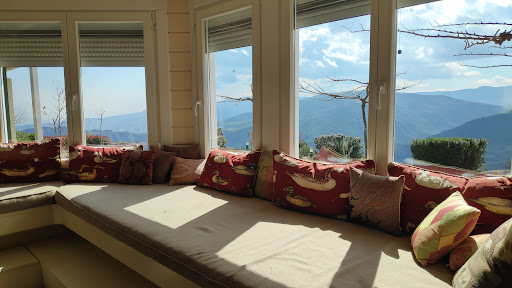 The facility is located about 30' drive from the Athinon-Patron highway but you need to follow the instructions on their site, not the GPS. There is not much to do around the area apart from trekking or visiting the only tavern around which is 5klm away. The facility itself is very nice. The compound is comprised of wooden houses of different colours so it looks very pretty. The main building has a wonderful lounge area with a fireplace and a lovely siting space by the window where you can sit/lie and gaze at the scenery. Opposite the lounge is the dining area where they serve breakfast, lunch and dinner. Their continental breakfast is very basic (bread, cheese, butter, marmalades, milk/juice/coffee/tea). Anything else such as omelette, scrambled eggs, toast, etc. are served upon request and are charged extra. Adding some hard boiled eggs and a homemade pie in the buffet would be a small (inexpensive) improvement which would make a big difference. The rooms are located 150m from the main building, are spacious, very warm and have a wonderful view. Soundproofing is good, you don't hear any noise even though the rooms are one next to each other. There is no TV or radio on purpose to help you relax. The bathroom is nice, there is always warm water (you have to wait for a few minutes for it) and the shower has good water pressure. Staff is very friendly, helpful and attentive. Had a lovely time...