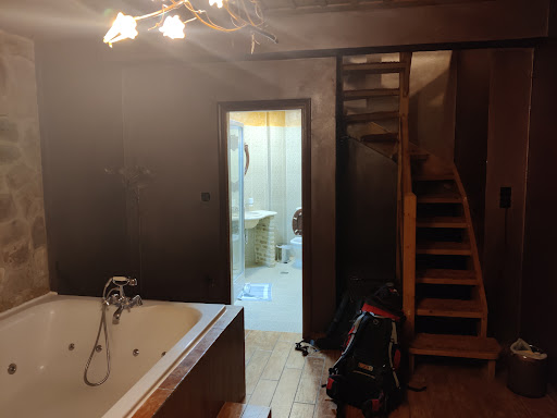 The room is of high standard, amazing for couples. Two floors, bedroom floor and shower plus living room with jacuzzi and fireplace, very romantic. There is a balcony with marvelous view. The owner is amazing. We asked about trails, he went to get us a map. We asked about dinner, he recommended his restaurant, the portions are very large, we got a tankard of wine and desert on the house, the milk lamb was delicious. The largest meal I had in Greece and it cost 26 Euros. We asked about coffee, he went to give us a kettle. Best...