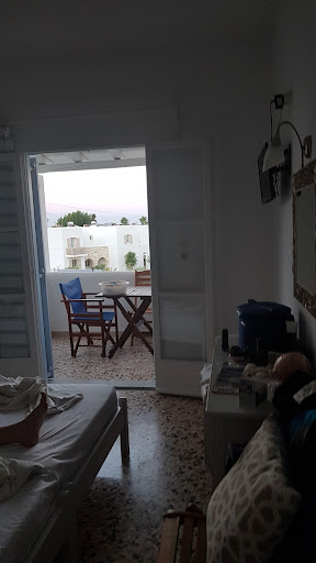 The apartment was perfect,clean and spacious,with a huge balcony and lots of space to hang wet clothes.The shower doesn't make a mess like most hotels and there's all the kitchen equipment,towels,a hairdryer,a fan in each room and also air conditioner.All of them worked perfectly during our 9 days stay. The bus stop is only 2 minutes away on foot and some of Paros best beaches are only 10 minutes away on foot (bonus: there's a perfect little beach which looks magical at night and is perfect for a midnight swim only 3 minutes away on foot).Miss Flora was the friendliest host.She made as marmalade and cake and gave us advice on what to do as well as the best ways to get the most out of our stay in Paros. There were 2 big mirrors in our apartment with view of the garden which we found ideal as a group of 4 girls. The area is very peaceful and quiet but we missed out on nothing when it came to the nightlife thanks to the easy bus access. I 100% recommend these apartments and would personally definitely chose to stay there again if I ever...