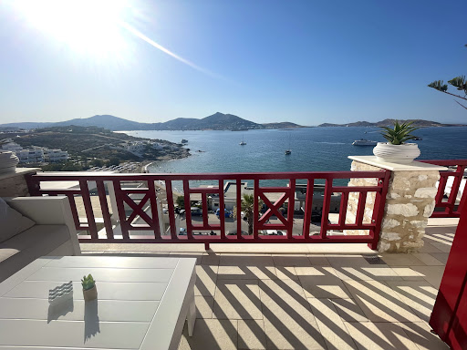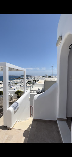 This was an interesting place to stay. It was difficult to find and our taxi driver had to phone management to get directions. It was a half hour taxi trip from the ferry terminal, located on a hill within 3 minutes walking distance of central Naoussa. We were grateful for a first floor studio due to our heavy baggage, but the views to the Aegean from the upper storey would be far better. The balcony was furnished and very wide which is a rarity in Greece. We were provided with a pull out clothes line on the balcony for sun drying. Our studio was on the stairway side and fortunately the studio next door was vacant otherwise the tenants of that studio would have walked past our doorway across our balcony to reach their room. This could provide privacy issues for some but if travelling with friends or family, it would be ideal. The studio was spacious inside, however, the kitchen area was tiny and we weren't provided with a kettle. The bathroom had no screens or curtains so the water went absolutely everywhere (including over the toilet seat) when either of us showered. The bed was queen size and hard as a rock - which suited us but may not be suitable for others. The wifi was provided as part of the deal but it was sporadic and unpredictable. It was easier to walk into the centre and find a bar or restaurant with free wifi. Naoussa and surrounds provided us with beautiful vistas, great shops, interesting walks, tasty food, friendly service and quality wines. We had booked the same taxi driver from the ferry to pick us up, so getting away from the venue was not a problem. At time of travel, payment in cash only was accepted. Price was reasonable and location is excellent (when you find it!) Would recommend for families or couples...
