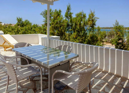 Where do I start, to describe paradise? My husband and I arrived without booking last Thursday on the off-chance they had a bungalow available for a week. The apartment we chose was perfect: clean, well-furnished with full catering facilities, delightful shower room and a bed as comfortable as ours at home but the terrace is amazing! 40 sq meters, one third shaded with table, chairs and loungers and glorious views through palms to the sandy, azure bay just 30 paces away.||||Mika and Christos welcomed us for a drink at their wonderful snack bar terrace and we thought we had simply renewed old friendships. Their levels of hospitality are un-rivalled in our travels, extending to exquisite snacks and Parian delicacies prepared by Mika, a fabulous cook. Christos daily laid out loungers for us under palm umbrellas on his beach and allowed us to cook on their fabulous, huge bbq - even providing the charcoal.||||The bungalow was cleaned and linens replaced daily - better service than any hotel. Chatting with them both, together with Mina and Christina was an absolute delight - Mina even gave me some Greek lessons!||||The location is stunning: tranquil, peaceful and relaxed but only 2.5 km from Naoussa by car. Perfect for couples or families, the sea is warm and shallow for yards and yards but then opens into a beautiful, sheltered lagoon.||||Cannot recommend it highly enough - the best experience so far in two...