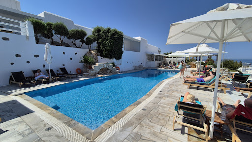Paros Palace offers plenty of Greek charm. The hotel grounds beautiful and the room is spotless. When we walked into the room, I could smell the cleaning solution. If you are a clean freak, you will feel comfortable here. The whole room is white washed from floor to ceiling, and there was no visible dirt nor stain. The outdoor pool/patio space is very spacious. There was a small pool, two loungers, love seat, cushioned chair, and even a day bed with tons of pillows. The tall hedges made it feel private even though it was next to a walkway/driveway. The restaurant where the breakfast is served has an amazing view of the island and sea and the food was pretty good. It's not a large buffet with loads of choices - no made to order egg station nor sliced up fruits, but the selections offered were more than adequate. The breakfast attendants were so helpful. One day, the waiter walked across the restaurant to take pictures of us when he saw we were taking selfies, and some of the photos he took are some of my favorites from the trip. Thank you!|The location of the hotel isn't bad because it's less than 5 mins to Parikia, but you do need to use the hotel shuttle to get there because the roads are busy and there are no sidewalk. The hotel shuttle was always available when we needed it and came to pick us up quickly from the Parikia port. However, I wish I had stayed at a hotel in a walkable area. But Paros Palace offers a fantastic view of the island being that it's on a hill.|As far as the location of our suite, I wasn't too crazy about it. Our suit (401) was right above the bar/pool area. I was worried about the music and noise from the bar area, but it wasn't loud, thankfully. However, if someone is smoking right below in the bar area, the smoke travels up to the patio, so one night I had to cut my patio time short. While there was a view, it was somewhat limited, only one spot in the outdoor patio offered an expansive view of the island while sitting down. Also, there's a double glass door to the outside but no window in the bedroom, so there was no view of the island from the room, just a view of the patio. While the room is thoughtfully decorated and adorable, it lacks some function. First, there were no dressers. There were open shelves, but I didn't want to have all my clothes and stuff piled on the open shelves. I didn't want to look at piles of clothes every time I entered the room since they are the first thing you see. There was a cabinet with doors but it was so high up that it was useless. There was no luggage stand, which would've been nice. However, there is a seating area to place the suitcases next to the open shelves. The bed is on a stone platform but it's kind of high. If you have mobility issues, it would be difficult to get in and out. The AC worked well, but it made wind sound. It was kind of like white noise that drowned out outside noise, so I didn't mind it (not that it was noisy outside.) Since the hotel is on a hill, you do have to walk up a steep hill or stairs to get to your room. There's no elevator. The shuttle driver will drive up to your suite for check in and check out only, so you don't have to worry about lugging your suitcases. However, for drop offs and pick ups to and from town, you have to do it at the front of the lobby. You'll be treated to plenty of house music of Mykonos in the shuttle. :D|We didn't rent a car, but there's plenty of free parking on the hotel premise. Although I was told that all the rooms are booked, breakfast time was never busy. We were out and about most of the day and when we returned to the hotel, the evening was pretty quiet and peaceful. The suites are very private and you didn't hear any noise next door. The bed, sheets, and pillows were all very comfortable and towels are good quality. They care a lot about their towels! The shower had good water pressure with plenty of hot water. Don't expect over the top hospitality with warm and friendly service and you'll be fine. Overall, it's a lovely hotel for a comfortable...
