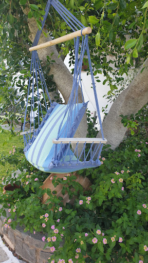 The property is an oasis in the town. It is a 10 minute walk from the ferry terminal and center of town. It's set back a few blocks from the waterfront in a more residential neighborhood, which achieved our goal of being in a quieter area. The lush gardens have many secluded seating areas. We got takeaway gyros from To Souvlaki Tou Pepe and drinks from one of the nearby markets one day and enjoyed eating at one of the tables in the garden.