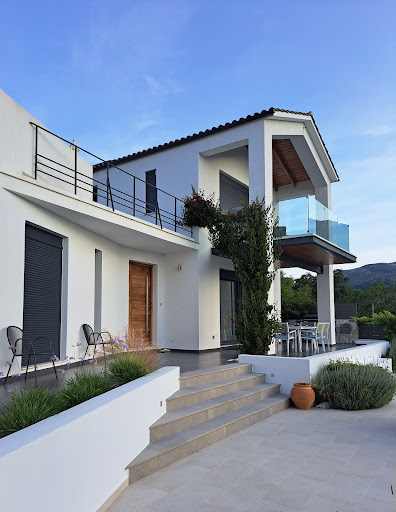 The house is stunning, the views are amazing regardless of which of the many, many spots you decide to relax. All of the equipment is top end, the bathrooms are 5 *, the beds are as good as you would have at home, the kitchen is well stocked with the stuff you need to have a fabulous holiday, the taverna up the road is so proud about what they do that we went there 6 times over 2 weeks for dinner and multiple times for a cold one at lunch time ... the views up there are equally amazing.